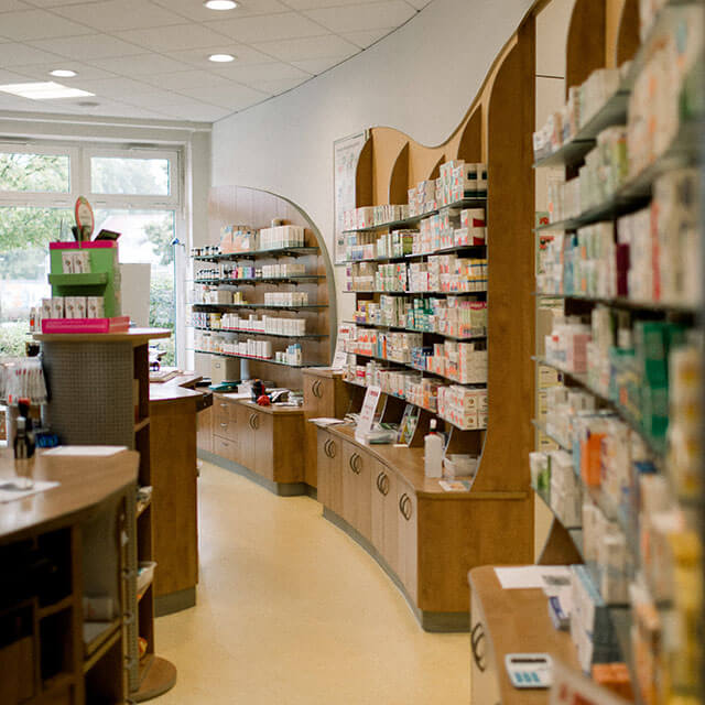 - modernste Apothekenausstattung mit Kommissionierautomat und Kassen mit